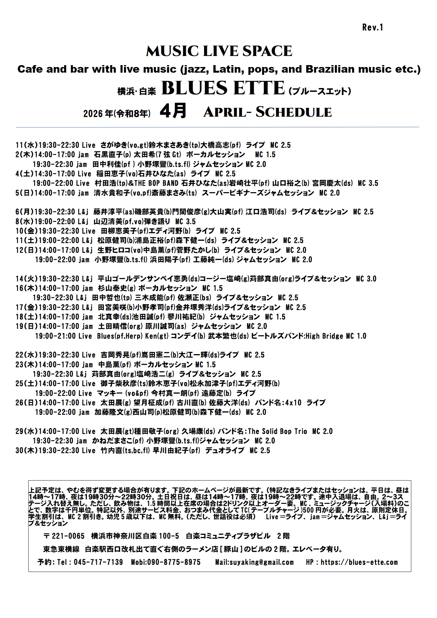 17:00~21:00BLUE LILY JAZZセッション2,100円